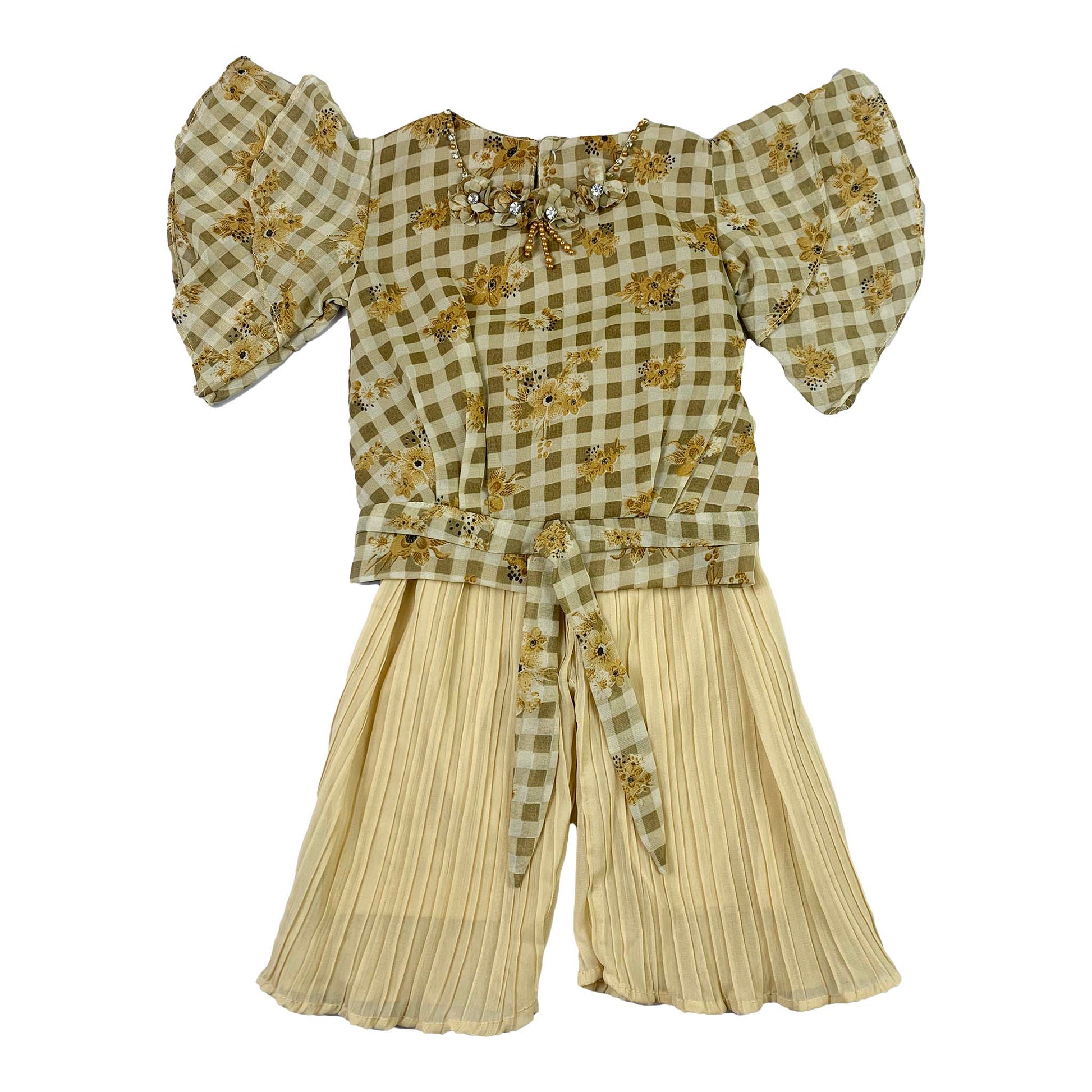 Baby Girls Elegant Floral Frock with Cream Plazzo