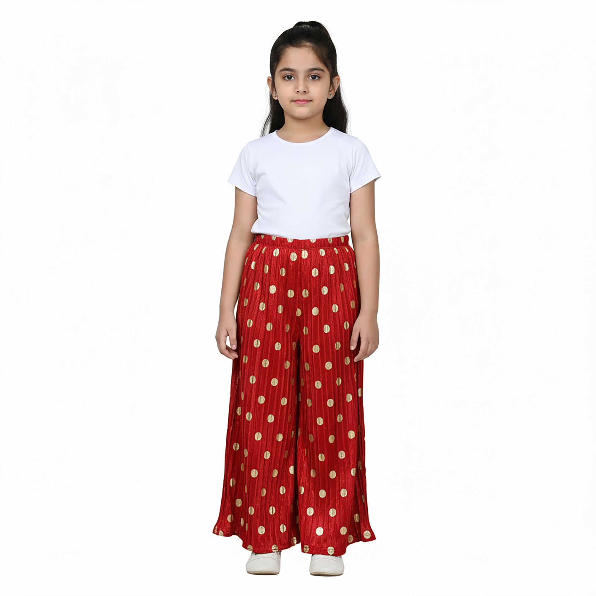 Girls Festive Red Palazzo | Golden Polka Dot Design