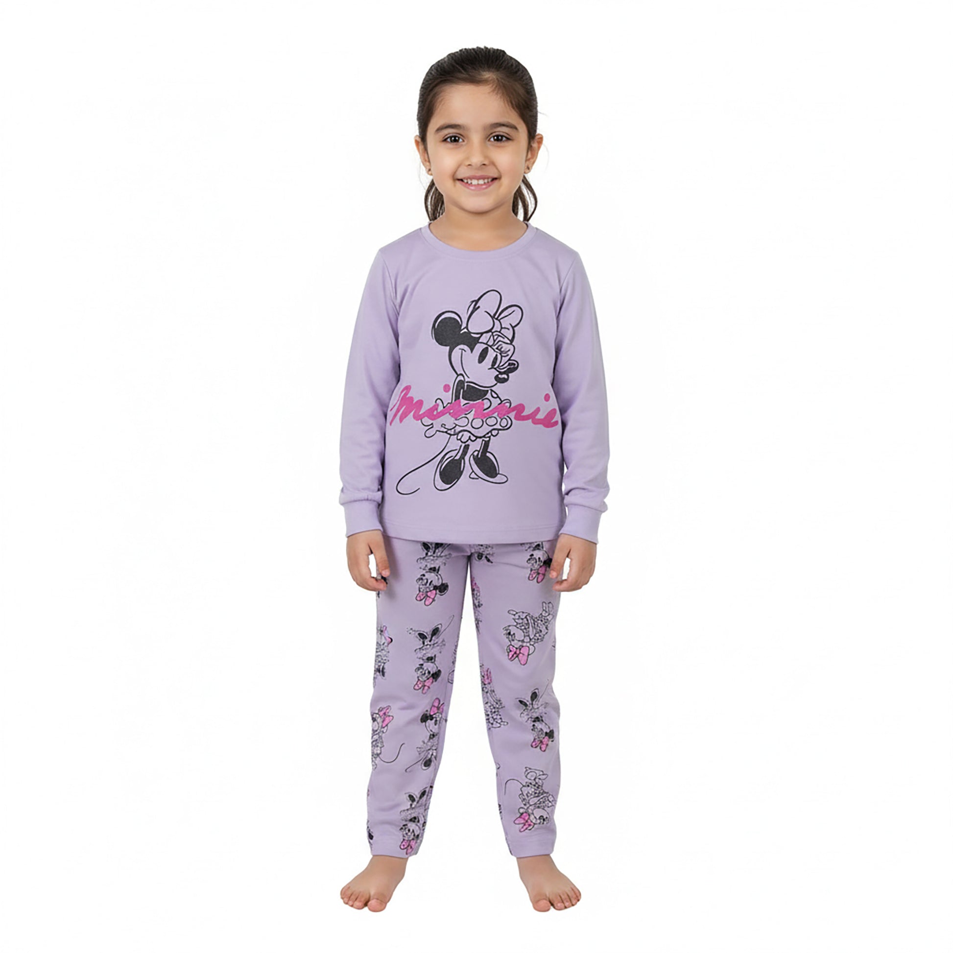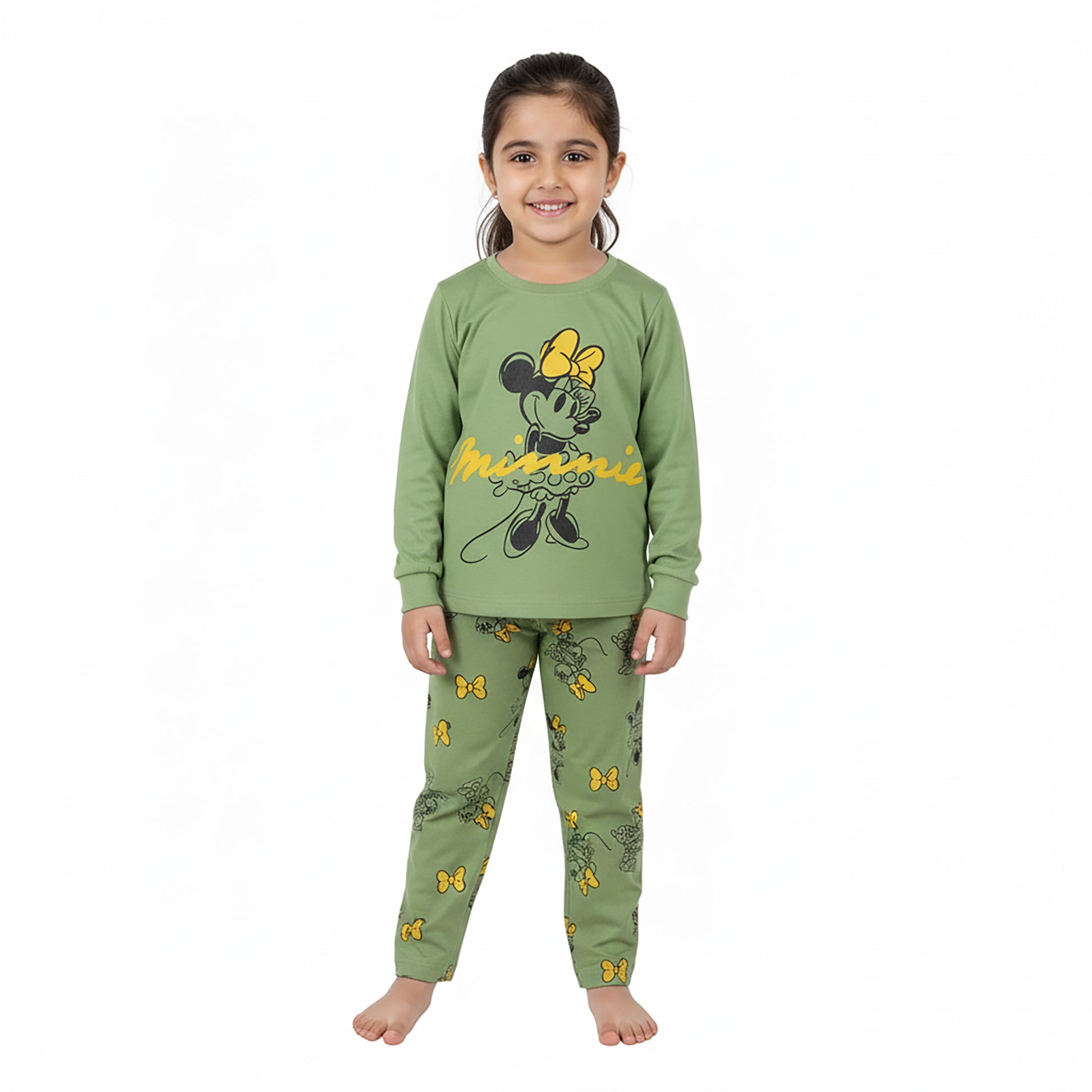 Girls Green & Light Purple Minnie Mouse Set with Printed Shirt and Bottom