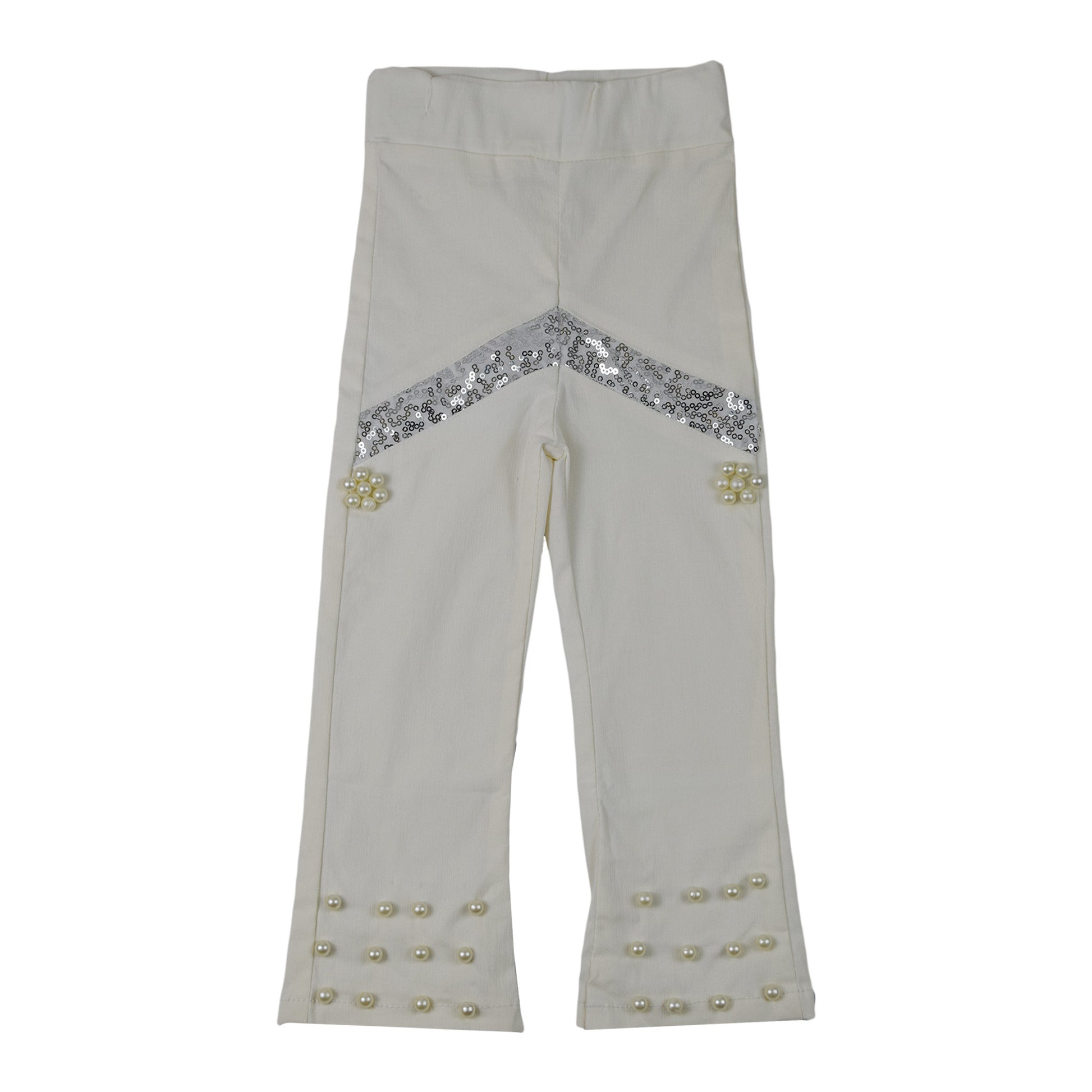 Add sparkle to her style with these elegant girls’ trousers featuring pearl detailing and a silver sequin design. Available in white and black, these fancy bottoms are made from soft, comfortable fabric—perfect for parties, festive wear, or special occasions. A stylish and graceful choice for girls’ fashion in Pakistan.
