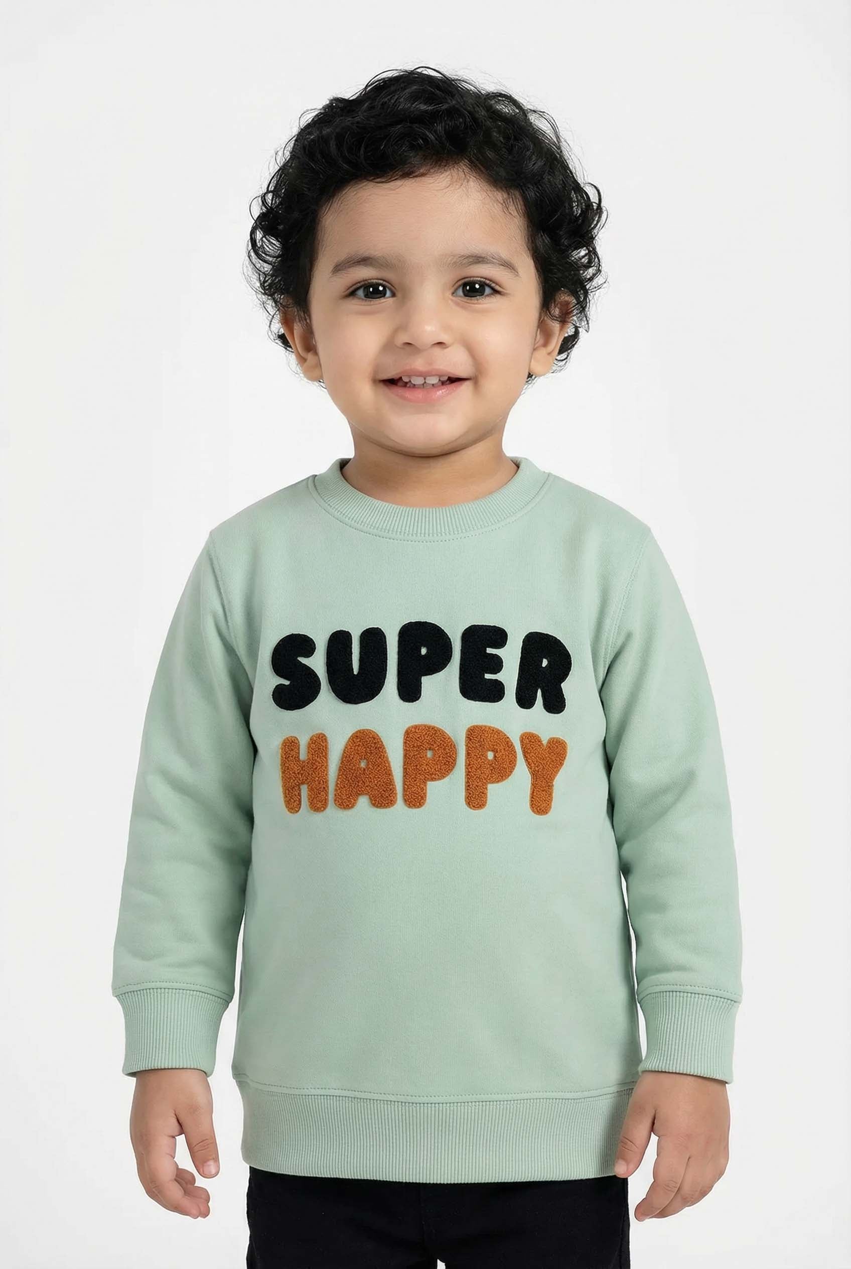 Brighten up your child’s day with this mint green “Super Happy” sweatshirt, made from soft, cozy fabric for all-day comfort. The playful 3D textured letters add a fun, cheerful touch — perfect for boys and girls alike.
